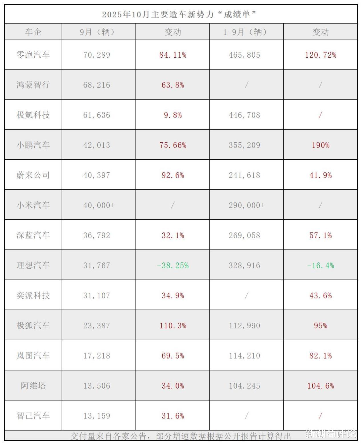 2025年11月消息:各家造车新势力纷纷公布10月份“成绩单”,多家车企单月交付量创下历史新高。