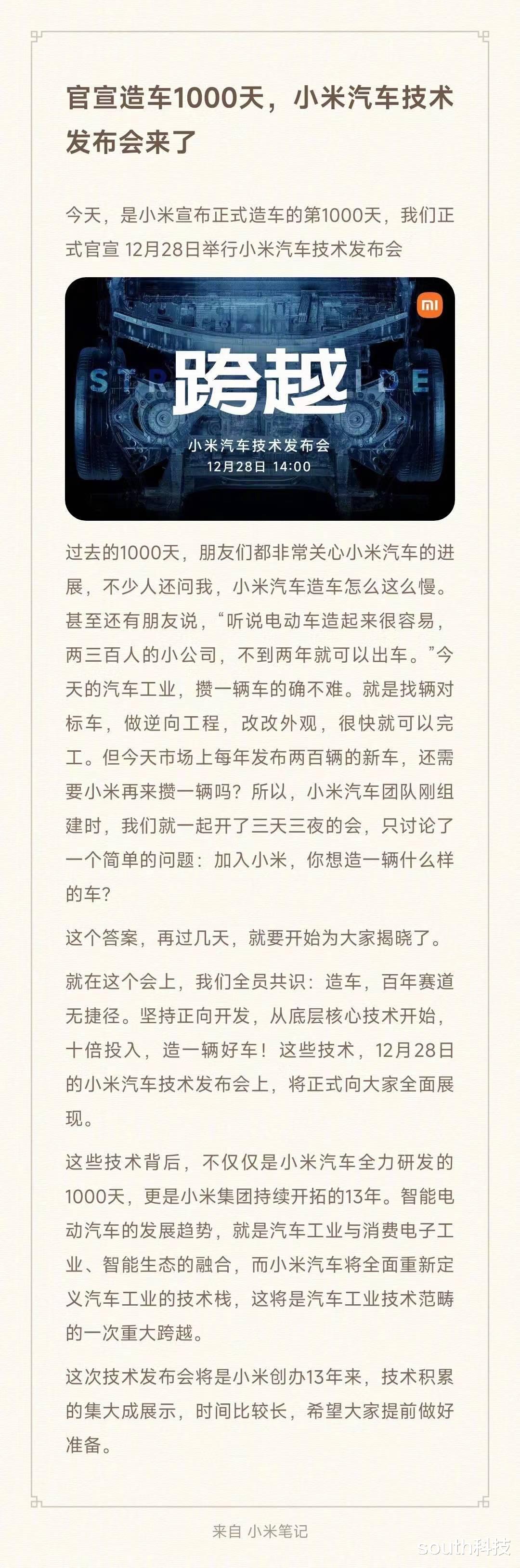 新能源车“卷”到飞起的年代,准备了3年1000天的小米汽车,终于赶在2024年到来前入场。从前段时间曝光的参数信息和技术发布会预热海报判断,小米汽车SU7还真是有备而来,并不是传言所说的随随便便拉几百个人敷衍做一款车。