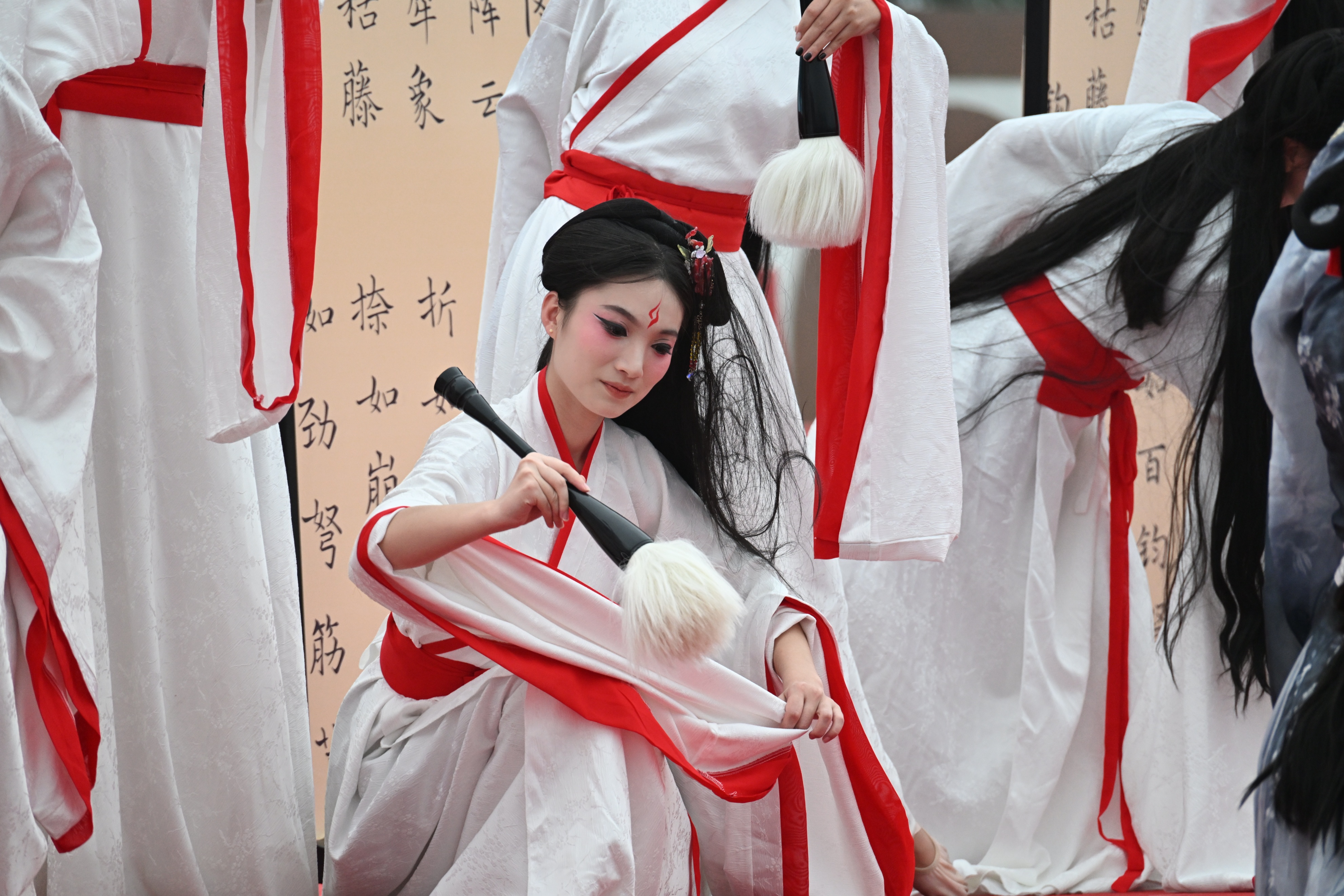 伴随着大型鼓舞情景表演《铄墨家国情》的震撼上演,大会拉开帷幕。开幕式演出以《簪花映素笺》《南北汇墨魂》《薪火启新程》三个篇章为脉络,将书法的笔墨意趣与悠扬乐声、灵动舞姿巧妙融合,让古韵墨香与舞台活力交织共生,为现场观众带来直击心灵的艺术震撼与视听盛宴。