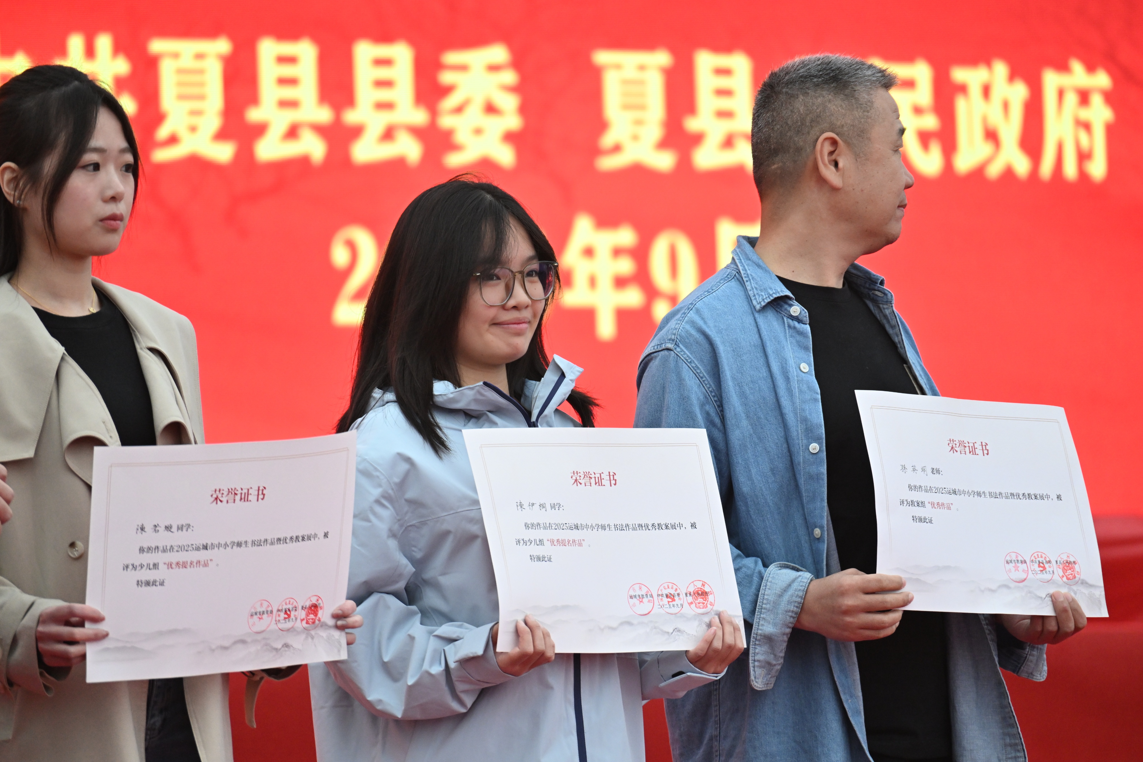 开幕式现场还为“翰墨河东・英才铄华”2025运城市中小学师生书法作品展暨优秀书法教案展、第四届“卫夫人奖”全国书法篆刻作品展的获奖代表及入展作品代表颁发荣誉,以表彰先进、激励创作,推动书法艺术传承后继有人。来自全国各地的200余位专家学者、书法名家及夏县社会各界群众齐聚现场,共同观看开幕式演出,共享这场文化盛宴。