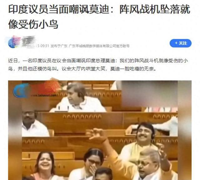 比如最近一些媒体发文,说印度议员当面嘲讽莫迪,阵风战机坠落就像是受伤的小鸟一样。