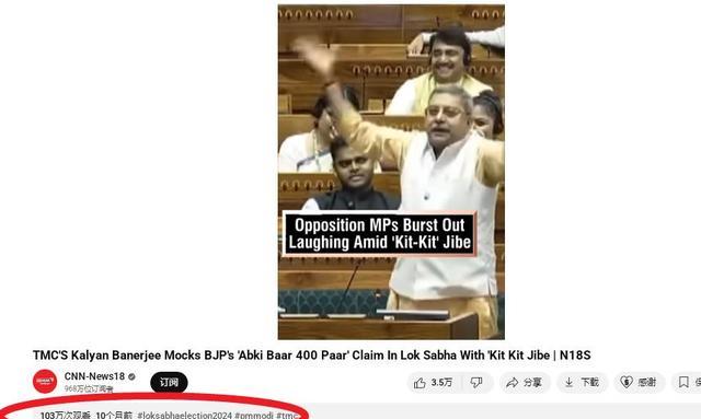 如果大家去到外网搜搜相关的新闻,你就会发现,这段视频是去年印度大选时候的事情,发生在2024年7月,当时莫迪的人民党提出了一个口号,印地语是这个Abki baar 400 paar,翻译过来的意思就是莫迪的执政联盟要拿到议会400个议席。
