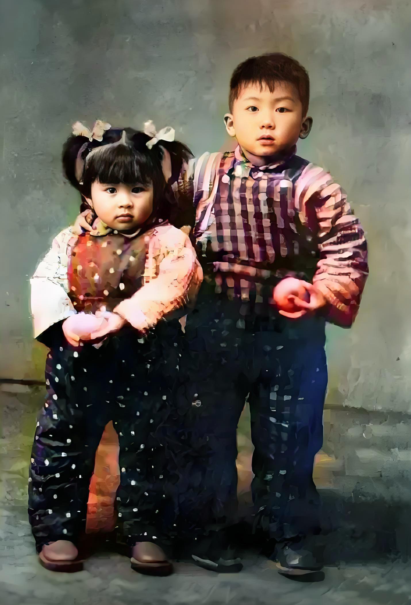 童年倪萍与哥哥,她穿的皮鞋是哥哥的