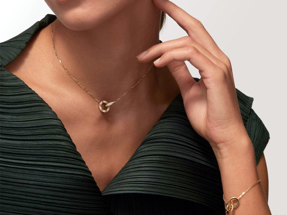 很多人在选购之余也会将同家族的双环作品纳入对比。其中,无钻款用两个椭圆形的螺丝指环相互嵌合,搭配浑圆饱满的O型链节,以最纯粹的经典设计诠释了Love珠宝简约而不简单的隽永魅力;单环镶钻款则在一侧圆环的外圈开设了一排透光小孔,并用林立的碎钻点缀其间,配以线条分明的十字链,更显佩戴者飒爽利落的不凡气质。值得一提的是,所有双环项链均有K红、K白、K黄三种颜色,以供每位客户根据自身喜好进行选择。