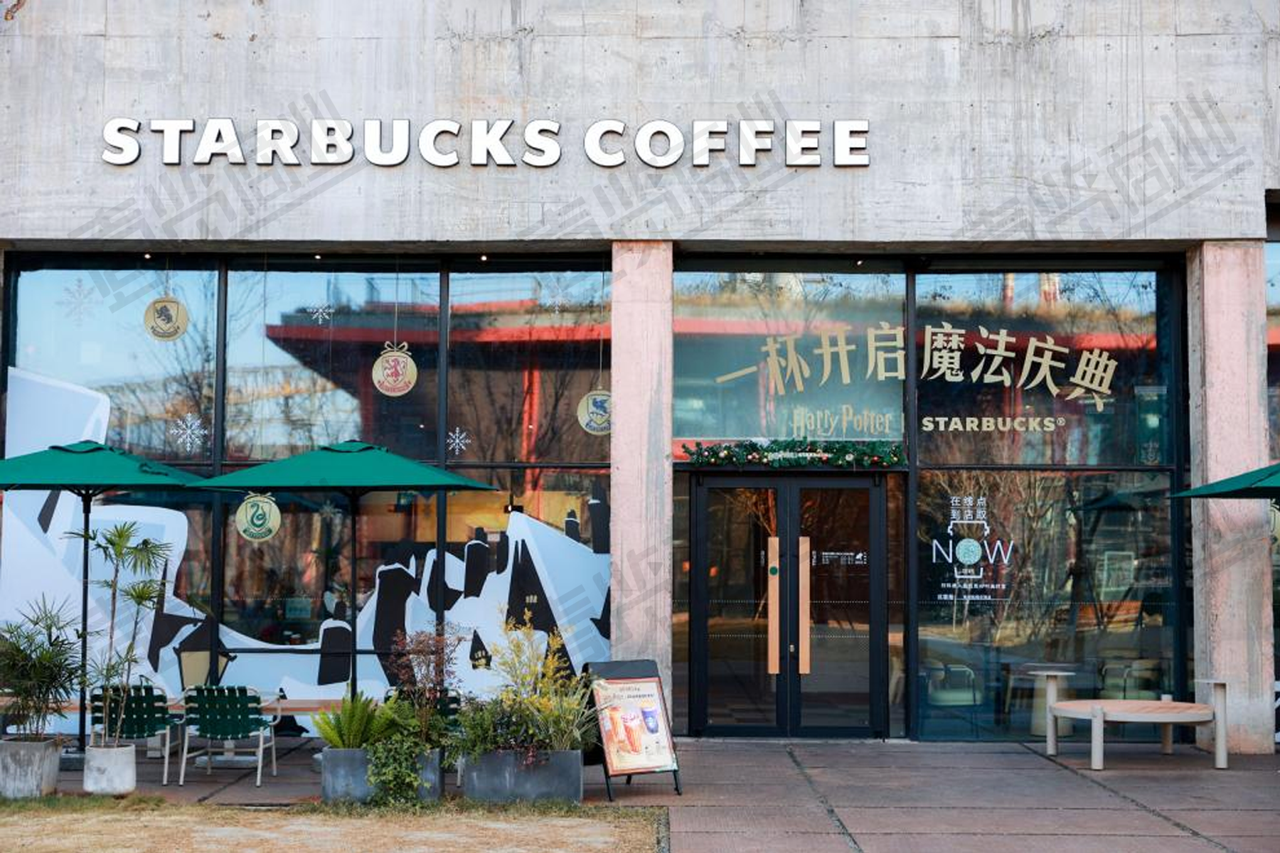 同步上线的还有多款主题周边:四大学院主题马克杯遇热变色,显现专属图腾;霍格沃茨城堡玻璃杯搭配发光杯垫;星巴克标志性的熊店长也化身四学院巫师,推出系列星礼包。此外,星巴克借助其“第三空间”优势,在北京、上海、深圳等27座城市的近40家门店打造限时魔法主题场景,店员化身“魔法咖啡师”,以特色拉花和仪式感出品增强体验。