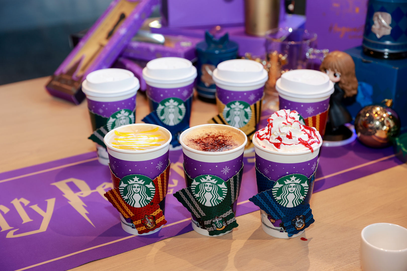 今日,星巴克中国正式推出哈利·波特联名冬日庆典系列,包括“魔法舞会”莓莓覆盆子拿铁、“霍格沃茨”焦糖酥塔风味拿铁、“巫师派对”伯爵茶橙柚拿铁三款新品。购买该系列饮品即可获赠限定紫色冬日城堡纸杯,并随机附赠霍格沃茨四大学院围巾杯套。