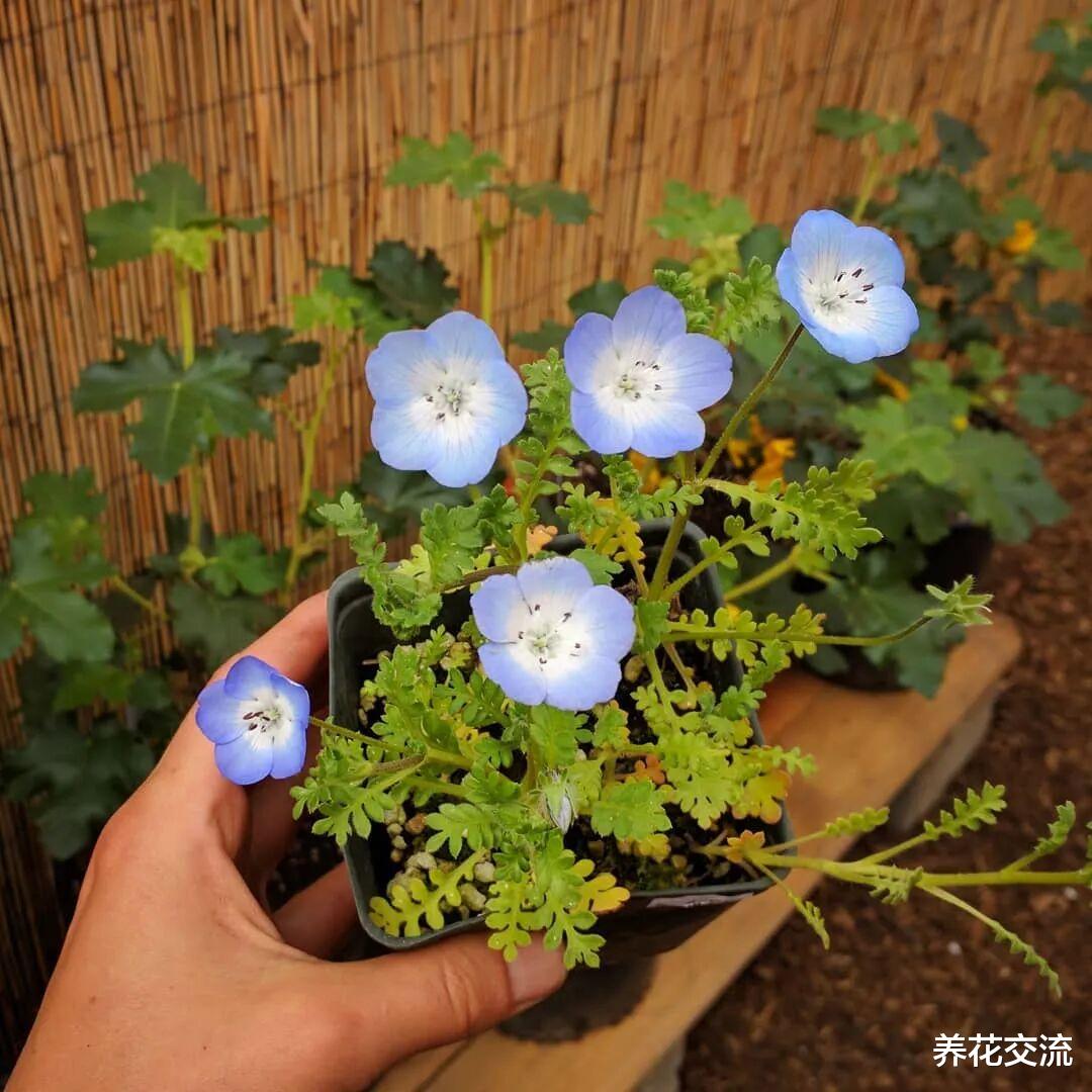 喜林草的花朵是特别纯净的蓝色,花瓣中心还有非常可爱的黑色“小眼睛”,是很纯粹的蓝色花。