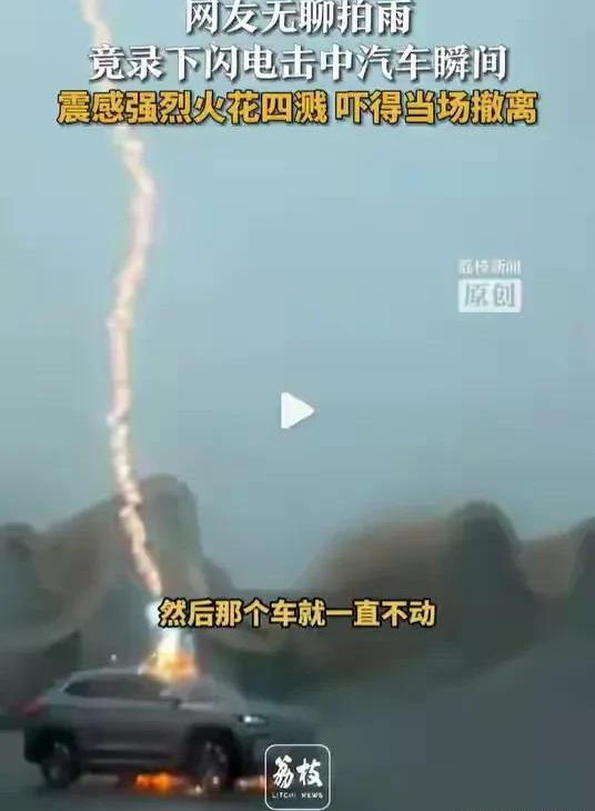 目击者举着手机直哆嗦:“这有点惨啊!谁经历过这场面?”拍完视频一脚油门赶紧溜了——毕竟雷劈车的名场面,谁不怕被“追加演出”?