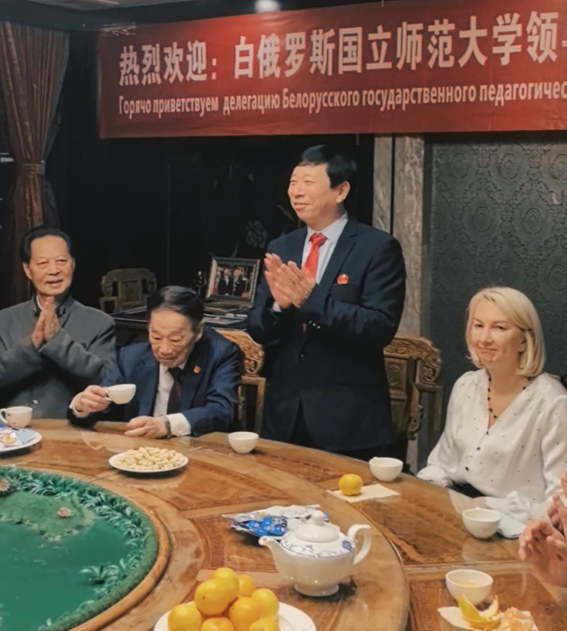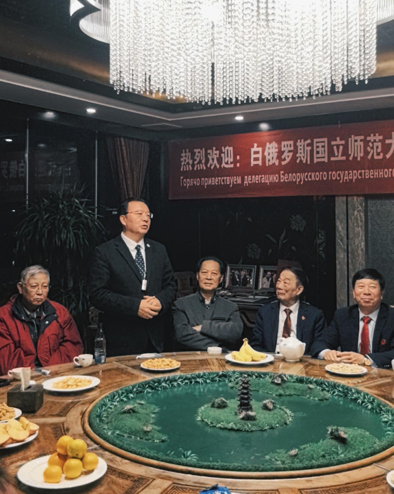 活动期间,我国著名社会活动家刘瀚锴先生致欢迎词!他首先欢迎白俄罗斯国立师范大学的领导来到美丽的中国传经送宝。
