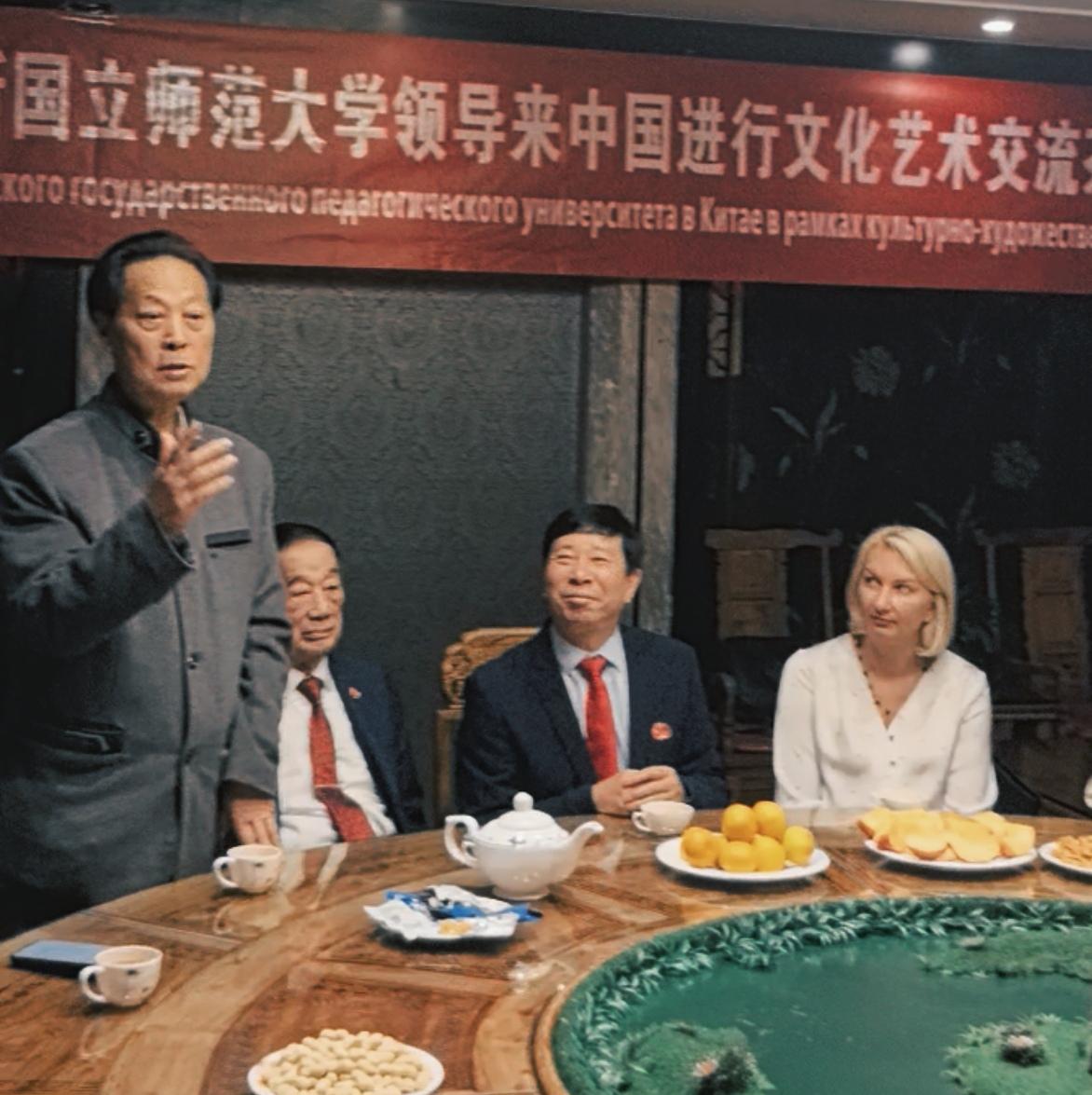 白俄罗斯国立师范大学领导和两位学院院长及白俄罗斯驻华大使馆文化参赞,教育参赞也分别发表了感慨致词!白俄罗斯国立师范大学主管教学及负责国际交流的校长 维罗妮卡·拉迪吉娜教授,向刘瀚锴先生馈赠了白俄罗斯工艺大师手工制作的亚麻等富有民族特色的礼物!