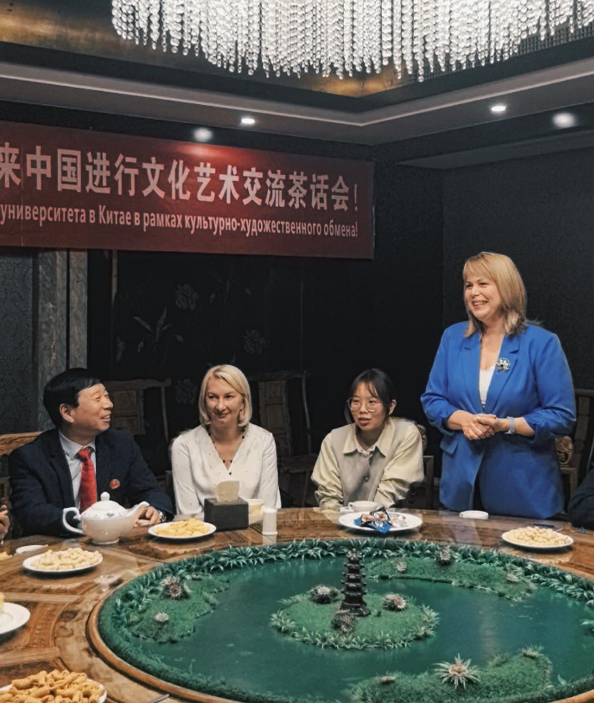 欢迎白俄罗斯国立师范大学领导来中国进行文化艺术交流茶话会、2025年11月11日下午,在北京市朝阳区美丽的通惠河畔举行!