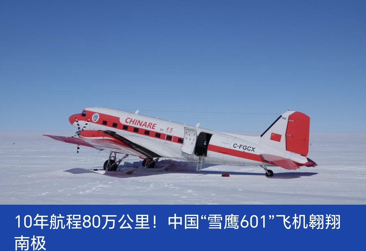 一:10年航程80万公里!中国“雪鹰601”飞机翱翔南极