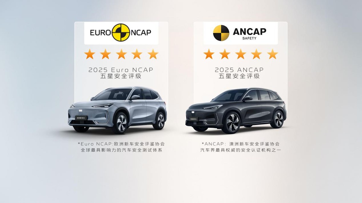 依托神盾短刀电池的赋能,银河 E5 整车安全表现同样亮眼,顺利通过中汽中心行业首次超国标整车安全魔鬼串联试炼,拿下 NESTA 六维电安全认证,还成功挑战 50km/h 正面中心柱碰超纲难度试验。更值得一提的是,新车斩获 Euro NCAP 与 ANCAP 全球双五星安全最高评级,成为目前少有获得该双认证的 10~15 万级中国品牌纯电 SUV,在被动安全层面做到了同级领先。