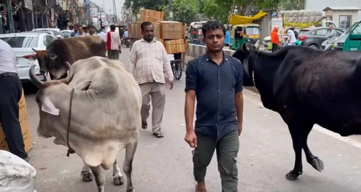 在印度,人畜混行的现象屡见不鲜,这主要是因为印度教对牛有着特殊信仰,再加上法律保护,使得流浪牛群不受约束。
