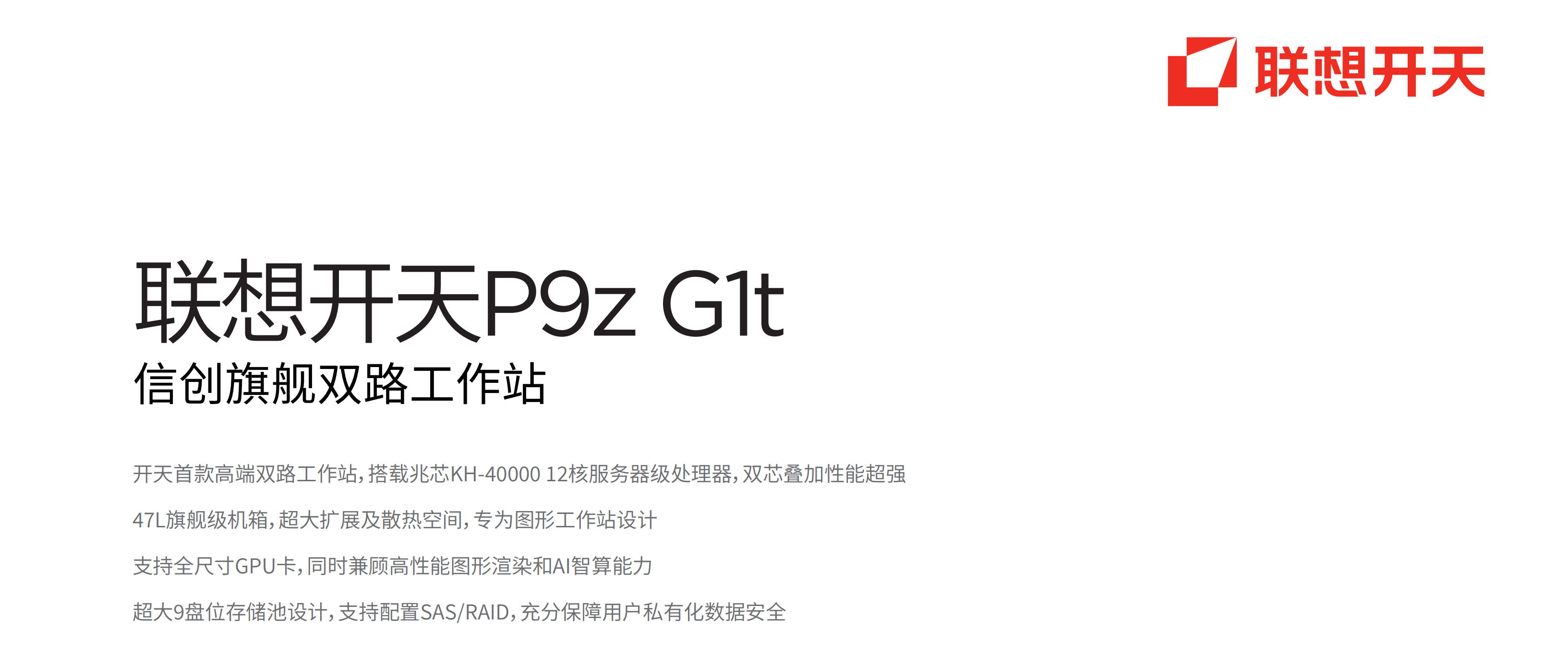 从设计创意公司的 3D 建模渲染,到科研院所的药物分子动力学模拟,联想开天 P9Z G1t 用实力证明:国产双路工作站不仅能实现 “替代”,更能实现 “超越”。作为联想开天系列的旗舰之作,它承袭 ThinkStation 专业设计基因,以 “算力无瓶颈、扩展无局限、使用无顾虑” 的核心优势,成为高端专业计算的 “国产标杆”。