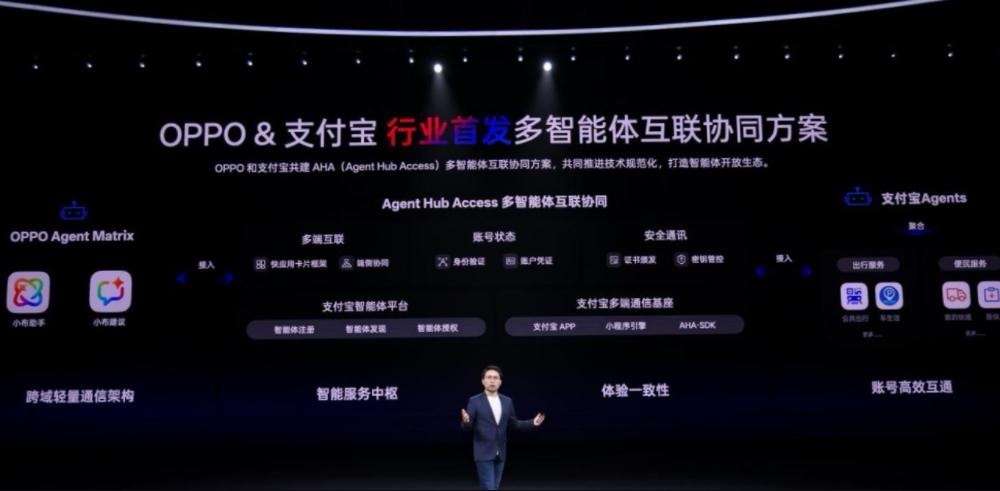 在刚刚结束的2025年OPPO开发者大会上,OPPO与支付宝携手打造的多智能体互联协同方案Agent Hub Access(AHA)惊艳亮相,用户通过小布助手一句话即可唤起乘车码、生活缴费等,覆盖出行、政务、医疗等多场景服务,大幅缩短服务路径,打造统一无缝的智能体验。