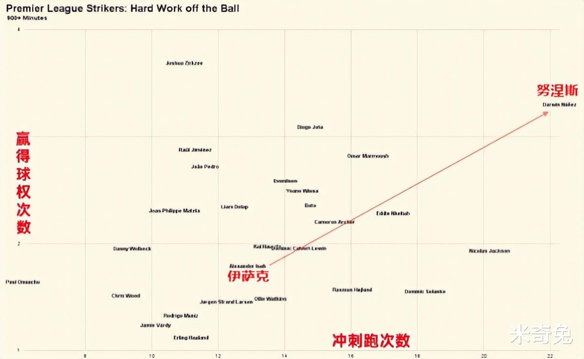 伊萨克在他身体状态最佳时,过去几个赛季在英超的冲刺跑次数都是处于中下游的。本赛季错过夏训后,他身体处于最低谷,本场与利兹联比赛替补出场后整整用了7分钟才完成第一次触球,球队被绝平,他是有一定责任的。