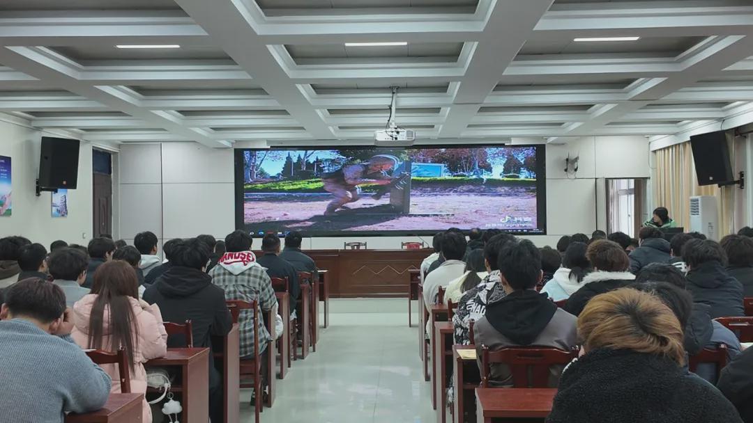 专题影片振人心,青春聚力践初心。宣讲结束后,全体人员共同观看了“强军路上信阳兵”专题宣传视频。影片中,信阳籍军人在军营里刻苦训练、奋勇争先的飒爽英姿,以及他们保家卫国、无私奉献的热血故事,深深打动了在场每一位同学,直观展现了军旅生活的魅力与军人的责任担当,进一步点燃了同学们的参军热情。