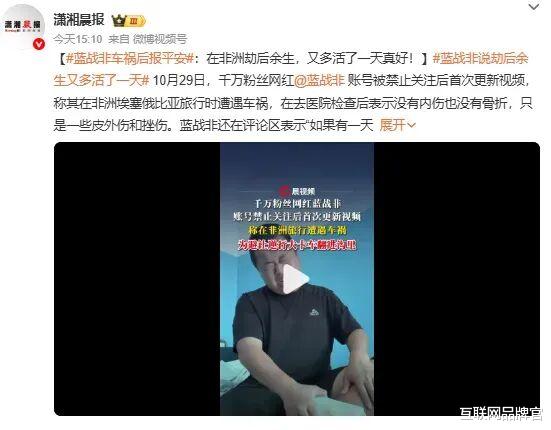 而蓝战非的回归带着戏剧性。这个曾宣称“年入九位数都小看我”的网红,解封后第一条视频却是非洲车祸后的报平安,一句“多活一天真好”赚足同情。