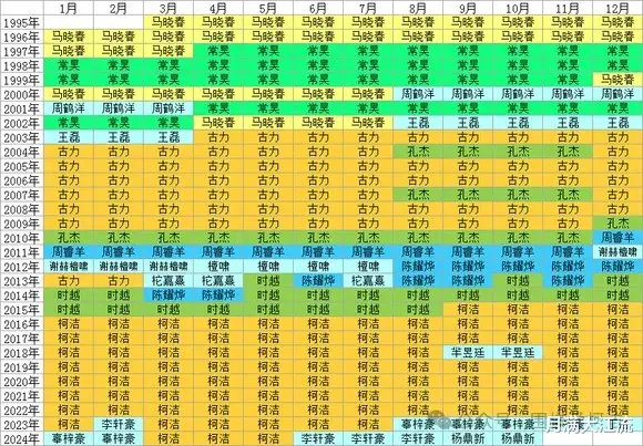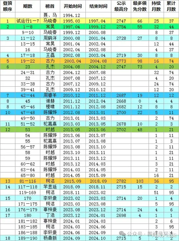 等级分(或早期成绩)长时间领跑的第一人,可视为领军人物。