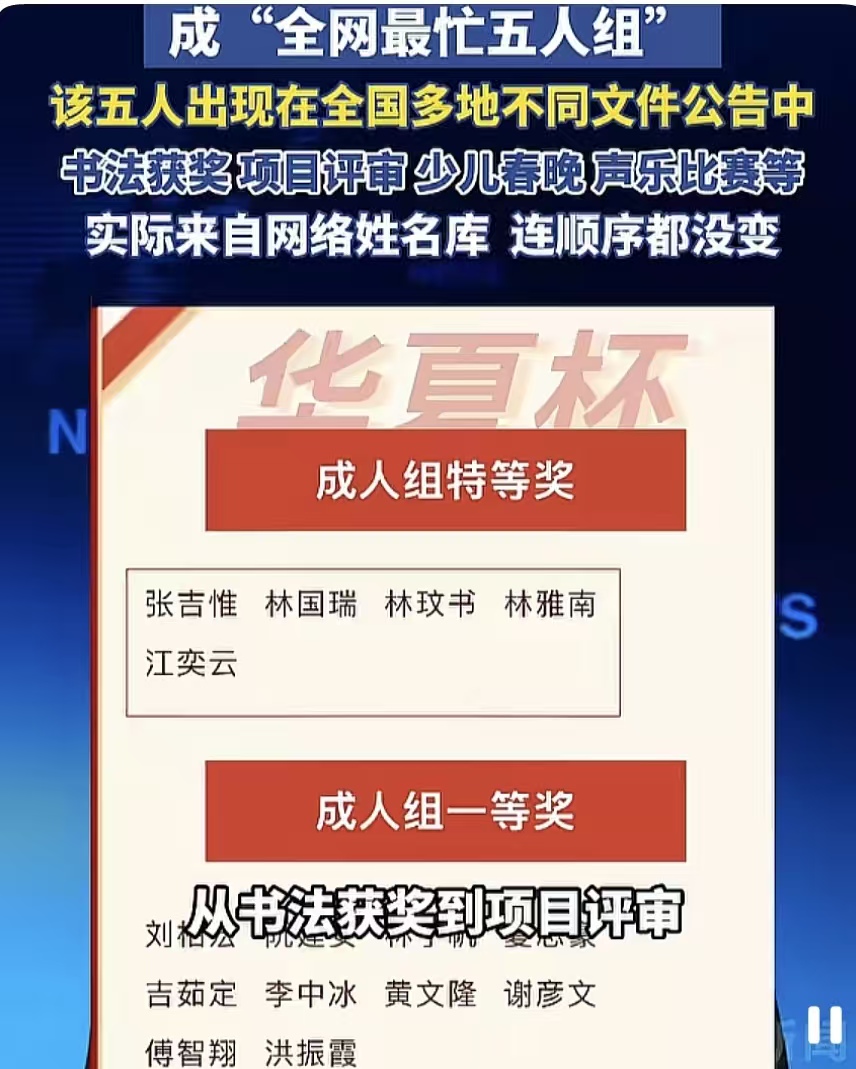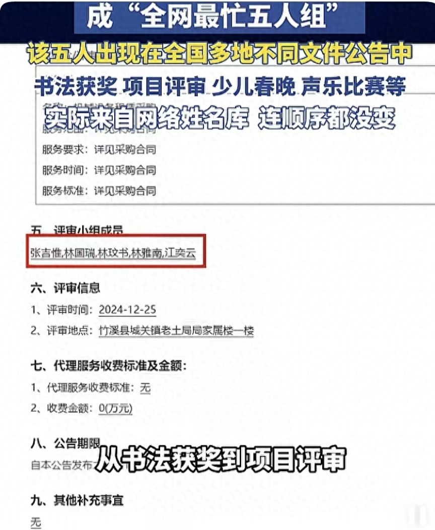政府采购评审专家需严格资质,书法大赛需核实身份,公益资助更要精准到人。而当他们连造假都懒得用心,直接照搬网络人名库,甚至连顺序都不改时,所谓的“公示”已沦为走过场。