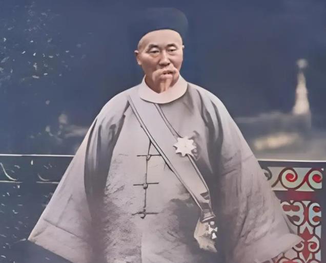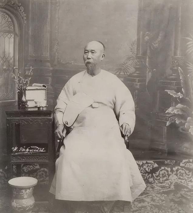 在这张照片中,李鸿章身着便服,胸前佩戴着朝珠,整体形象既庄重又威严。和当时众多清朝官员不一样的是,他的身高大约有一米八左右,站在人群中也可是十分高大出众的,因此,在许多对外交往和接待任务中,朝廷常常指派李鸿章出席,使他成为了那个时代官场中的“形象大使”。