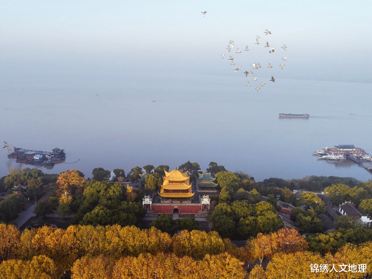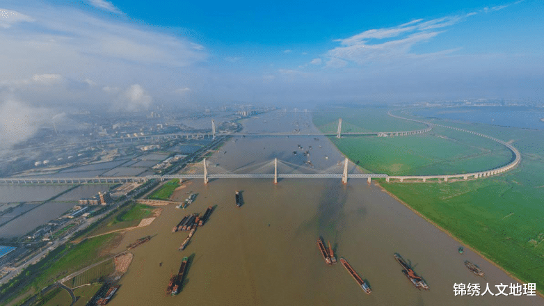 长江从荆州蜿蜒而下,途经湖南岳阳,并在此吸纳洞庭湖水继续东下。