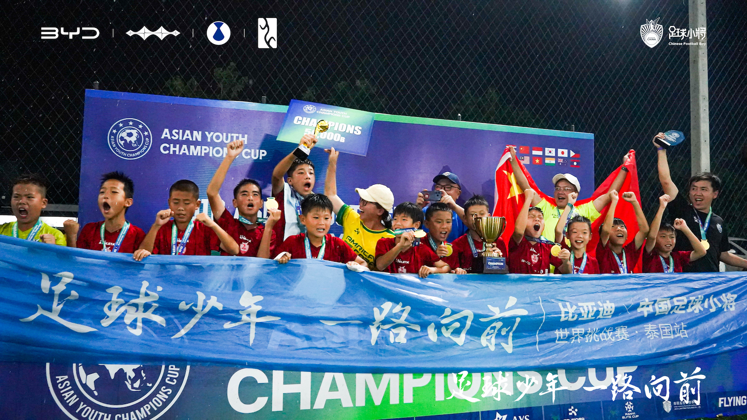 11 月 1 号到 2 号,比亚迪陪着中国足球小将去泰国打 “亚洲青年冠军杯” ,小球员们也很给力,本次泰国行以全胜战绩夺得冠军。