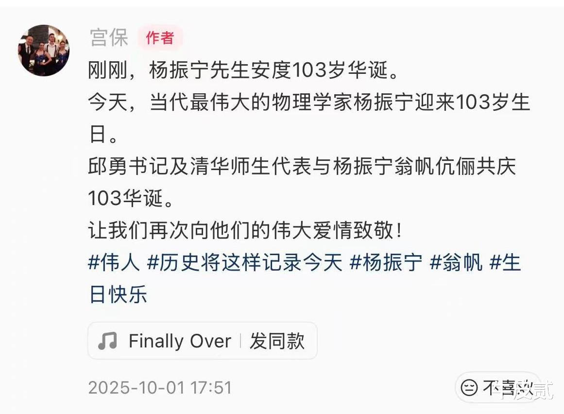 老公杨振宁103岁生日现场曝光,身体硬朗如铁,状态非常不错。