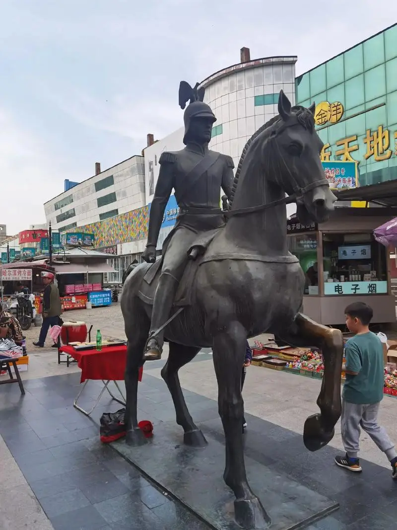 现在的洋货市场已经完全归于沉寂。前阵子打那儿经过,看到的是锈迹斑斑的大铜马静静地守在入口处,两旁商店大多关门停业,偶尔传来的“清仓甩卖、一件不留”的叫卖声在空荡荡的街道上回响。走在昔日繁华的洋货市场步行街上,鲜少有人为商品驻足,这与三十多年前人头攒动的景象形成鲜明对比。
