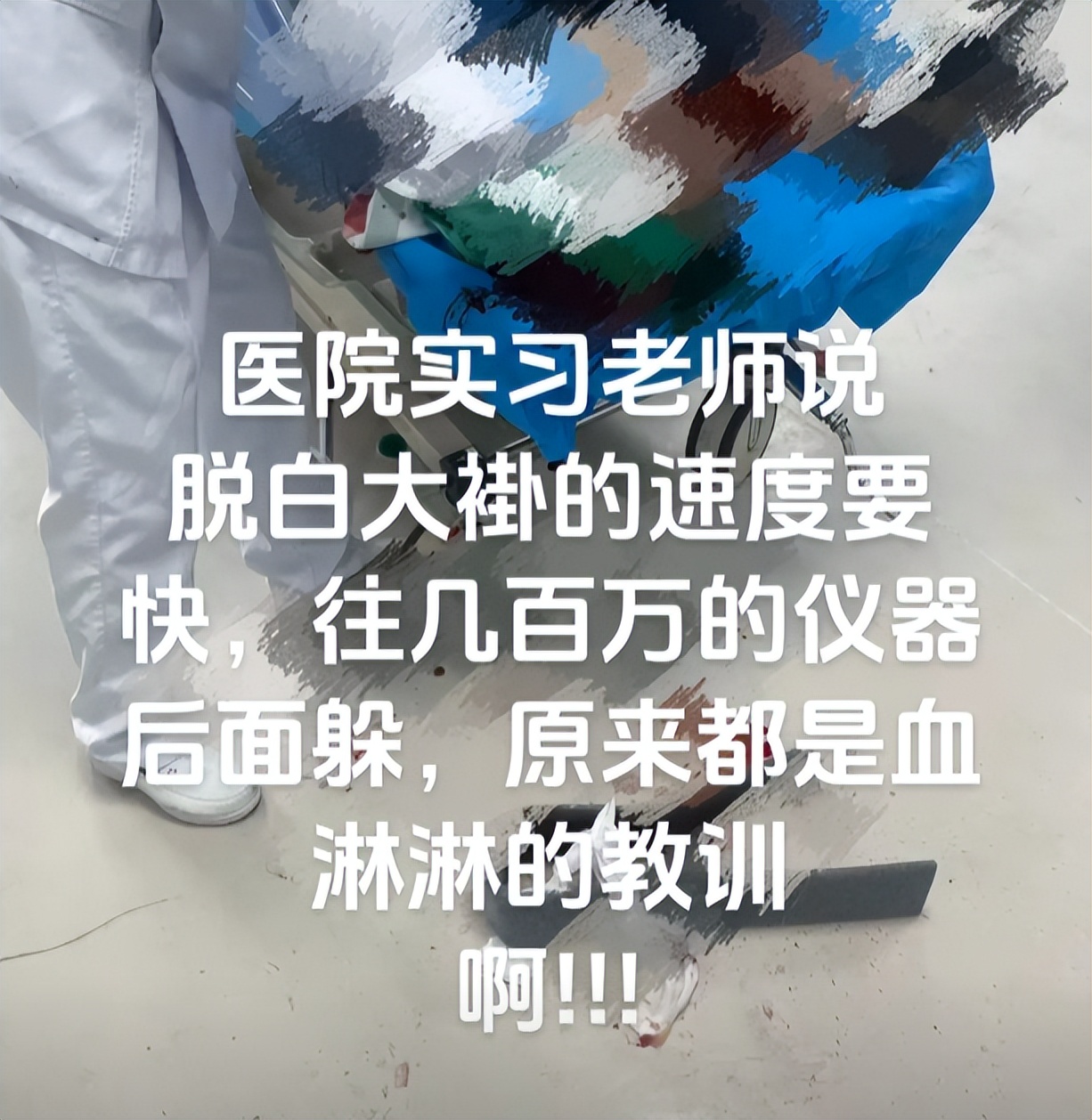 有医学生留言:现在终于理解了,为啥在实习的时候,老师会告诉学生脱白大褂的速度要快,往几百万的仪器后面躲,原来都是血淋淋的教训!