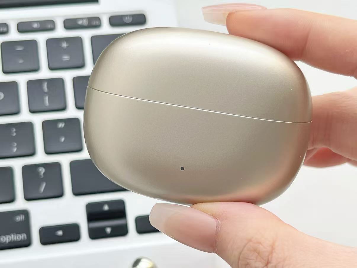 这款耳机的充电仓外观就比较有趣,是完全开放的设计,耳机的自重仅有5.3克,5:5的弧形桥设计还是很轻便的,我觉得还是比较舒适稳固的!