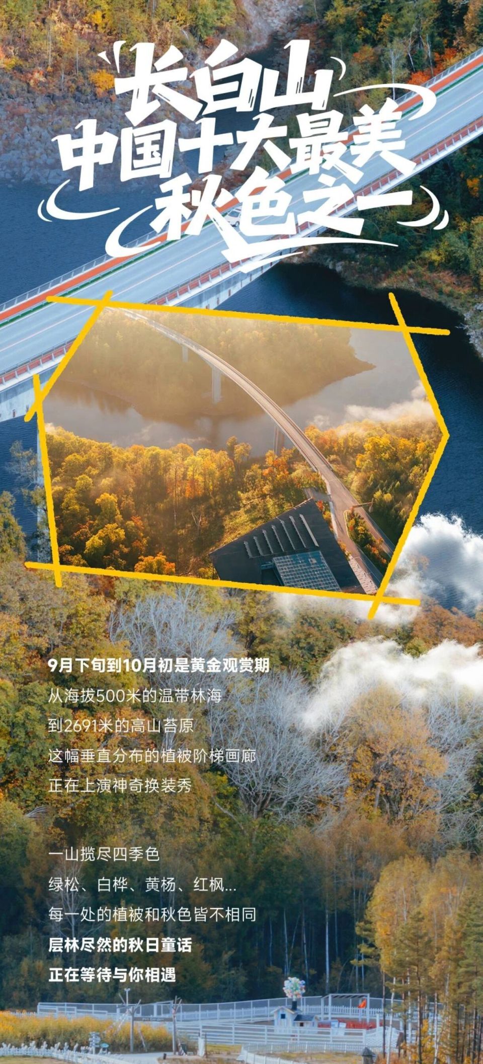 9月下旬至10月初,恰好是长白山赏秋的黄金时段。从海拔500米的温带林海,到海拔2700米的高山苔原,整个区域的植被如同展开了一幅立体画卷,正逐步完成从翠绿到金黄的色彩蜕变。唯有亲身置身在这片山林,才能真切感受到大自然馈赠的神奇与魅力。