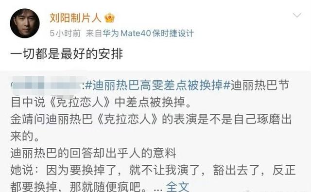 刘制片人似乎也是不吐不快,不仅声援迪丽热巴,还透露当初他曾力保热巴出演高雯一角。