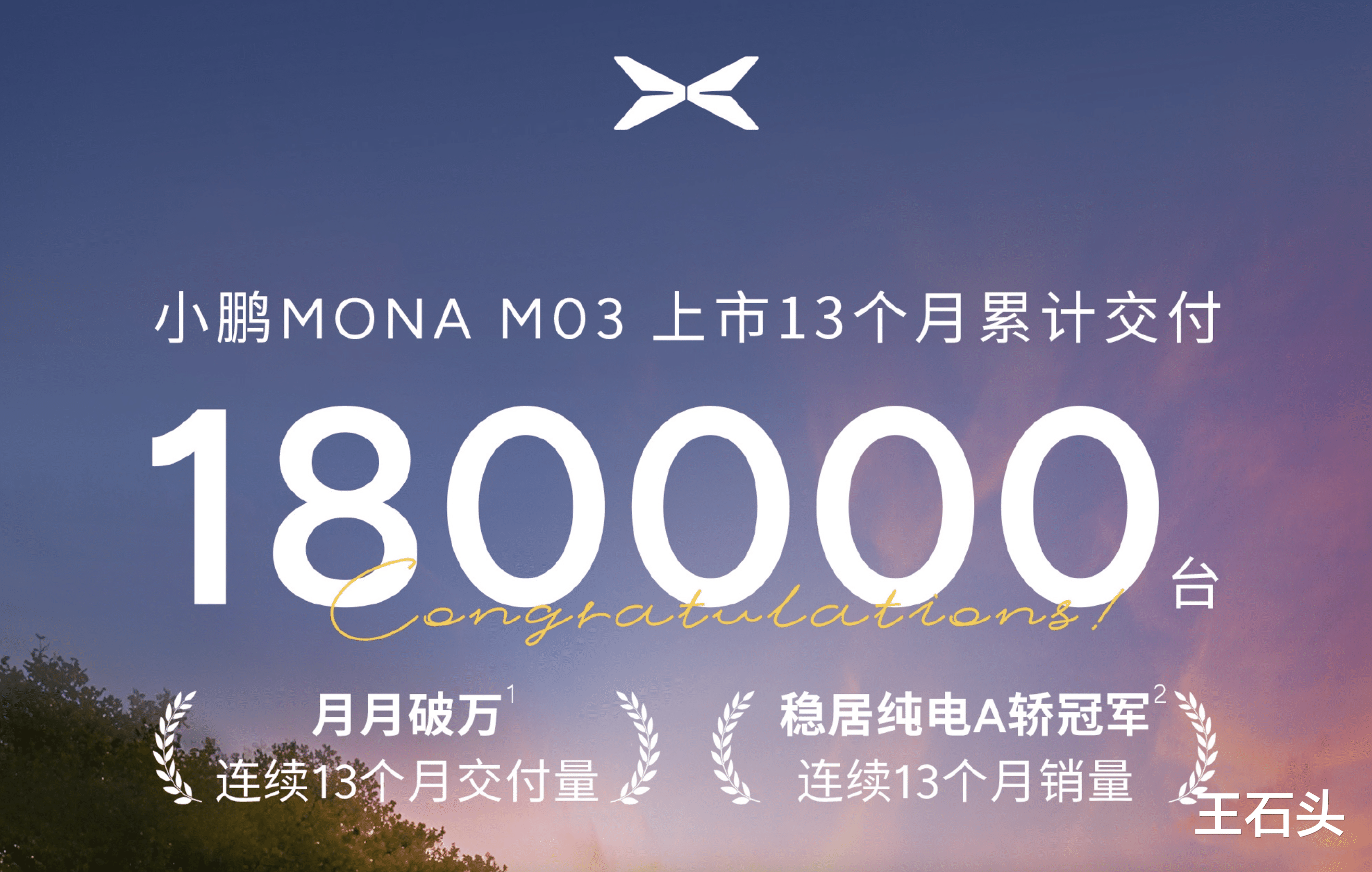 MONA M03系列成为小鹏的“走量王牌”,自上市以来累计交付量超过18万辆,并连续13个月交付量破万。