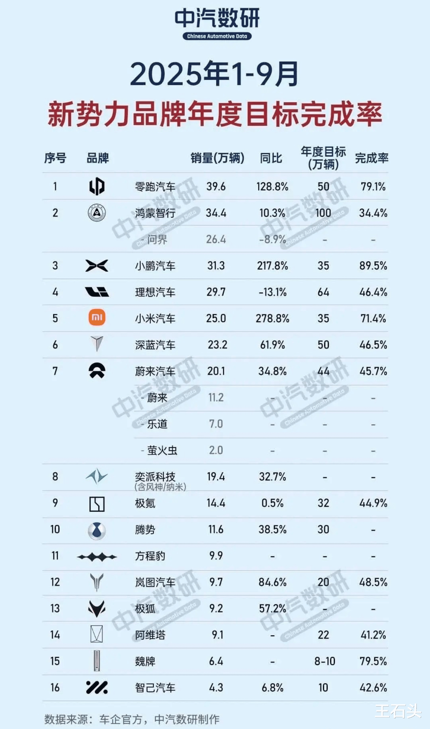 综合来看,2025年的新势力目标完成率榜单,揭示了中国新能源汽车市场正在经历的分化与转折。
