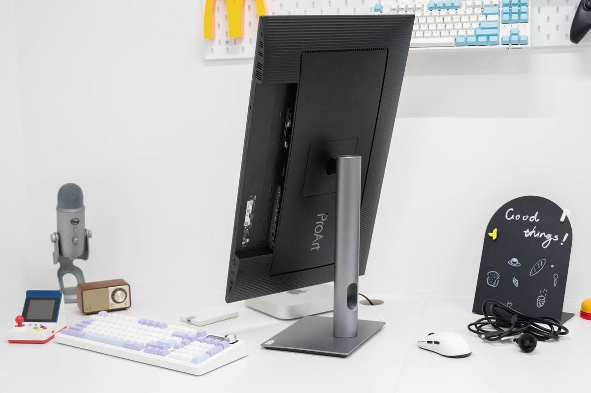 华硕ProArt创梦也提供了10x10cm的VESA壁挂接口,如果你有特殊需求可以自行更换,但我个人认为,这个自带的支架已经很好用了,可以满足绝大多数人的使用需求。