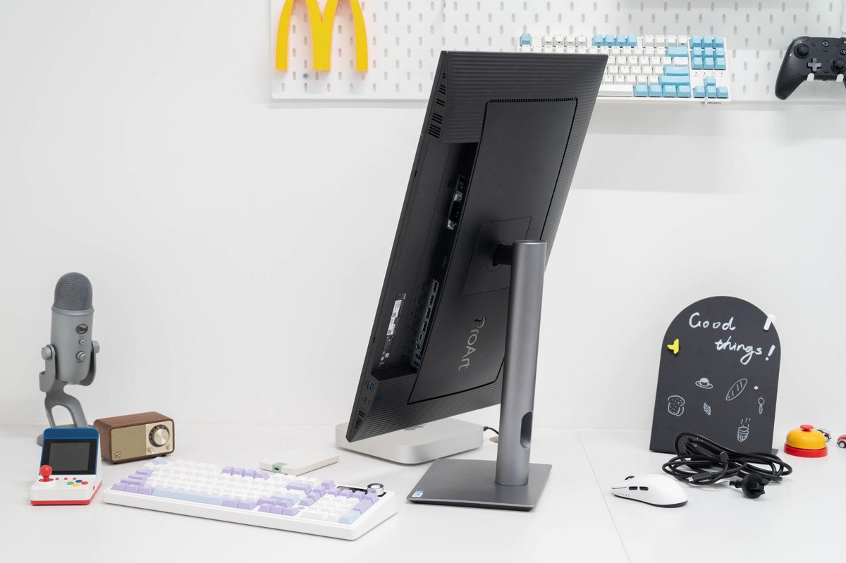 首先是外观ID设计,这也是我个人非常喜欢的部分。华硕ProArt创梦跟该系列的其他产品一样,低调专业的设计风格,高级感十足,是一台专业显示器应该有的样子。