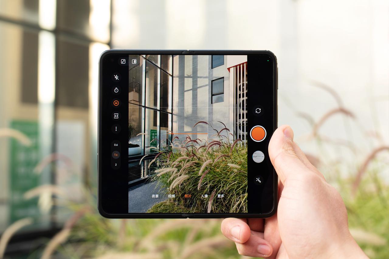机身成功减重的同时,OPPO Find N2采用的新一代超轻固拟锥铰链也变得更轻和更窄,并且在展开状态下带来几乎无痕的视觉效果,即便是在黑屏状态下也需要调整角度才能看到微微折痕,这样的表现对于一款折叠屏手机来说,已经超出很多人预期了。相比前代,OPPO Find N2内外一致的120Hz刷新率E6显示屏也为使用体验加分不少,多场景使用都提供了出色的视觉体验。