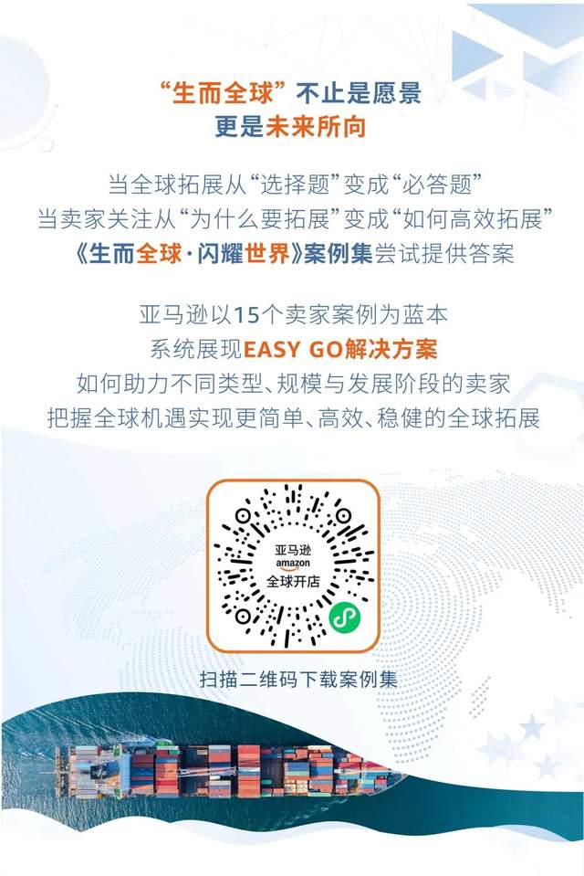 为具象化这一解决方案,亚马逊同期发布了《生而全球·闪耀世界》卖家全球拓展案例集,深度解析了盖世小鸡、倍思奇、巨星科技等15个品牌的成功路径,呈现了亚马逊EASY GO全球拓展解决方案如何将上述挑战转化为可落地、可执行的简单步骤,让全球拓展更简单。