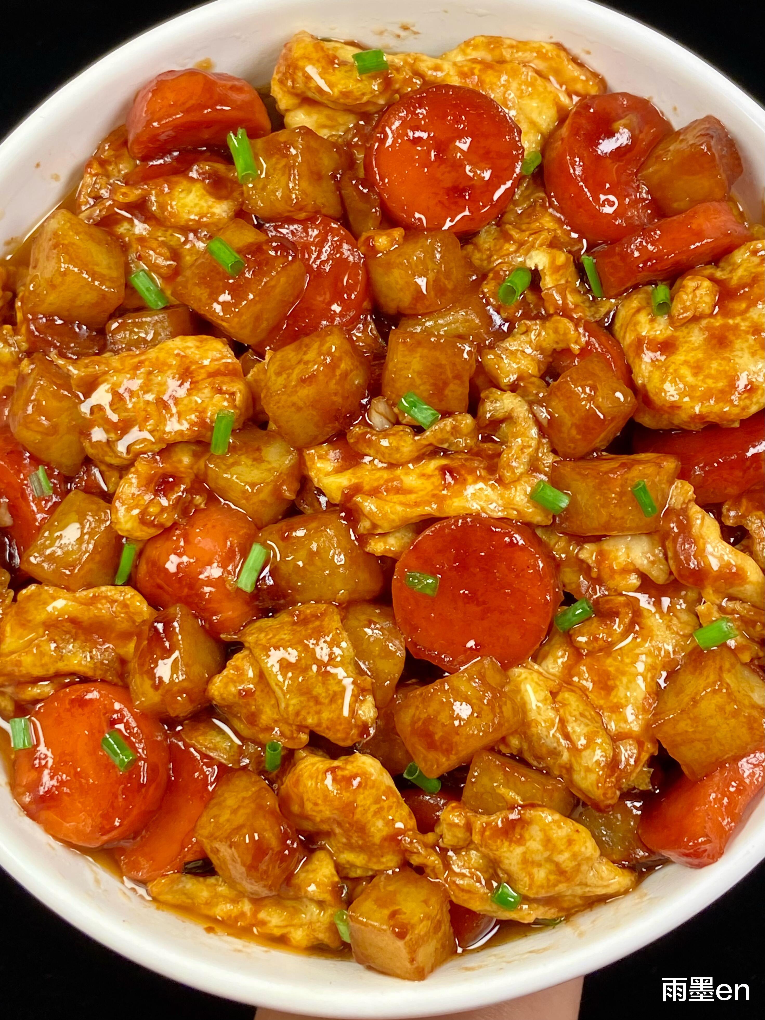 金黄的鸡蛋裹着酸甜酱汁,软绵的土豆吸饱了汤汁,一口下去酸甜开胃,配米饭能多吃两碗~ 这道菜做法超简单,不用复杂食材,15