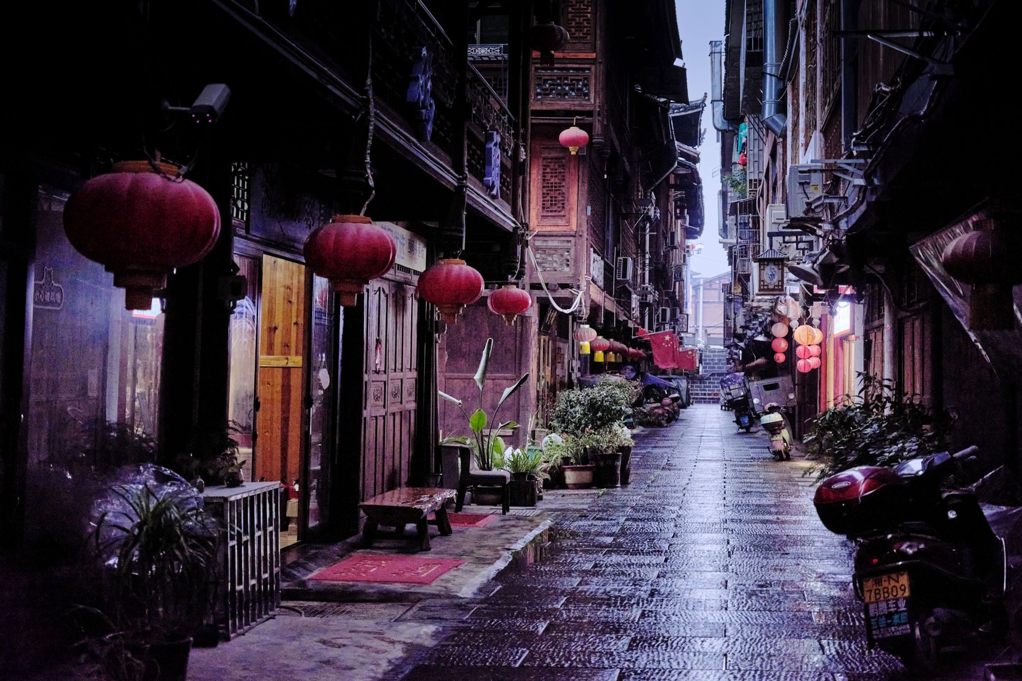 芷江古城距风雨桥也不远,大约5分钟路程即到。走进古城,刚刚下过雨的小巷安静诗意,湿润的青石板路泛出淡淡光泽,小巷两边的店铺里灯光昏黄,隐隐传出说话声、笑闹声,让人有种走进了电影中的氛围感。