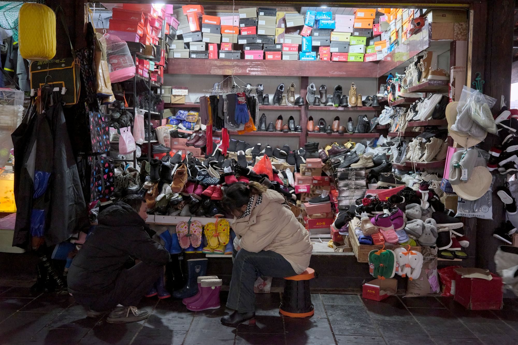 大大小小的店铺中售卖着衣服、鞋子、日常用品,茶馆里飘出淡淡茶香,甚至还可以看到小型牙科诊所,人来人往,充满鲜活的市井气息。