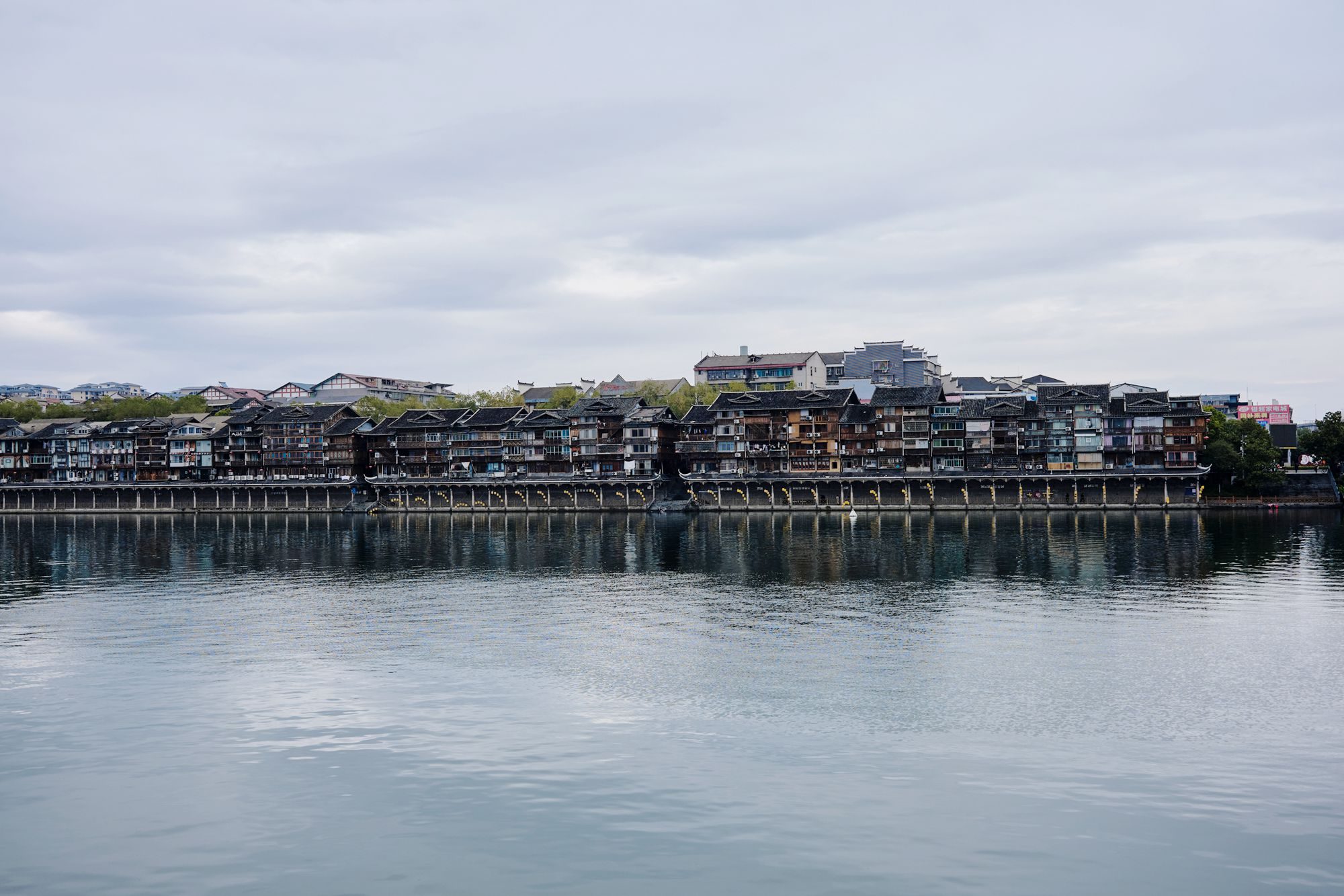 站在桥上眺望,高高低低的吊脚楼沿舞水河畔铺陈开来,仿佛一幅生动的人间画卷在面前徐徐展开。
