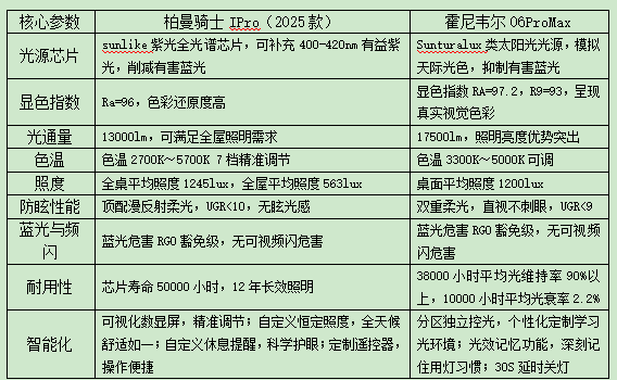 要想知道两款灯该怎么选,首先要了解这两款灯的核心参数有什么不同。具体可以看下面表格。