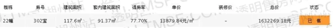 其中挂牌单价最低的一套房源:建筑面积约117㎡,单价约7693元/㎡,总价为90万。