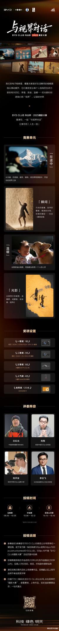 比亚迪的用心,总在细微处闪光。BYD CLUB车主杯影像大赛火热开启,这不仅仅是一次比赛,更是品牌与车主最深情的“对话”。