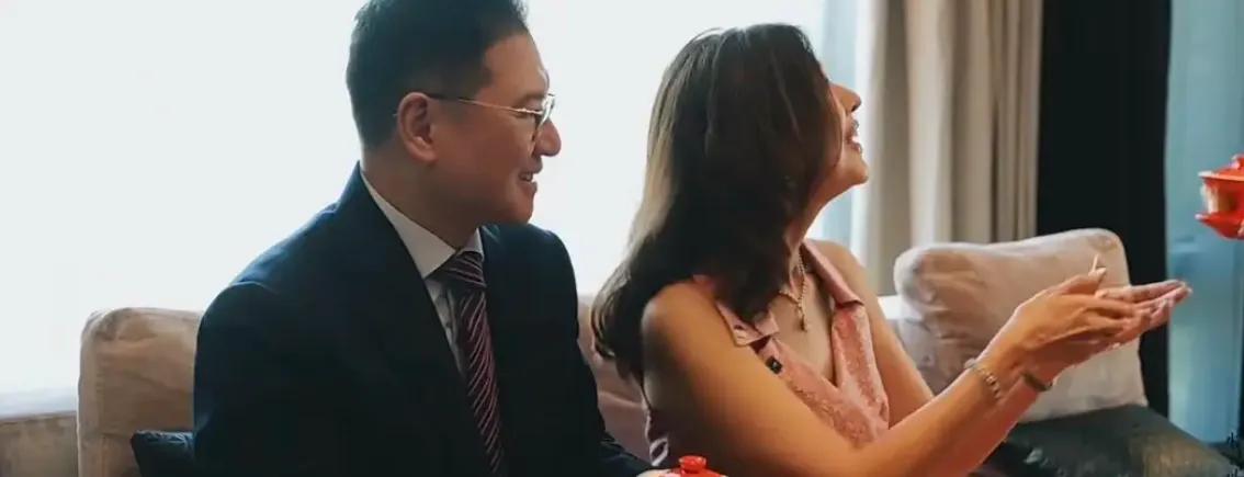 李嘉欣喜悦地接过茶杯,并赠予儿媳一对巨型龙凤镯作为厚礼。