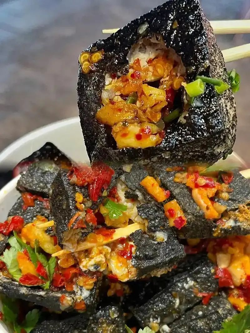 长沙的臭豆腐跟四川的不一样哦!外头炸得酥酥的,中间是空的,戳个洞洞灌点汤汁,再加点萝卜丁、香菜,一口咬下去,外酥里嫩,臭香臭香的,越吃越上瘾!推荐去坡子街或者太平老街买,路边摊摊儿才是最正宗的!
