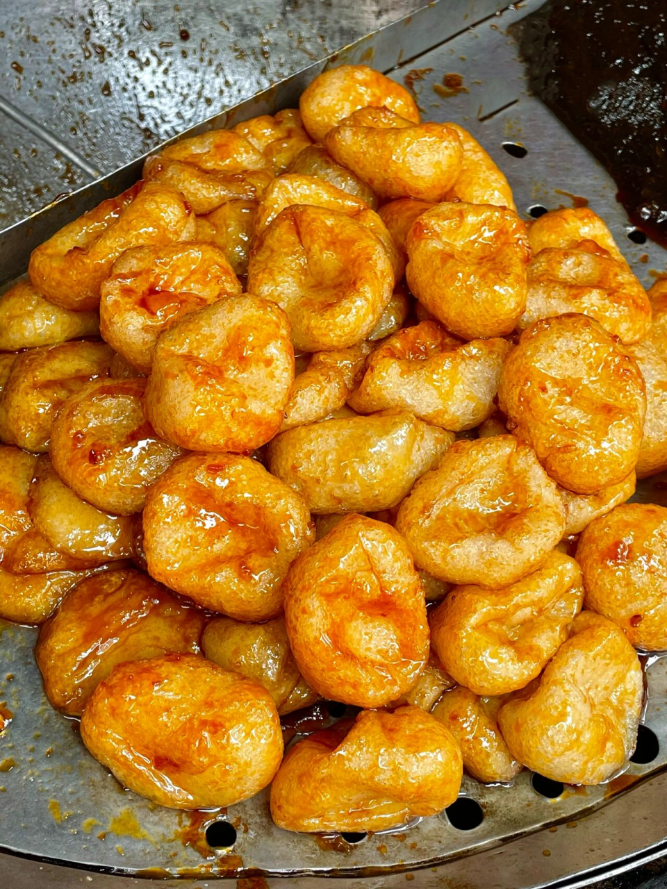 解辣神器来咯!糯米做的粑粑炸得金黄,裹上红糖浆,外脆里糯,甜咪咪的,一口一个,简直是 “碳水快乐”!建议去巷巷头的小店买,现炸的才好吃~